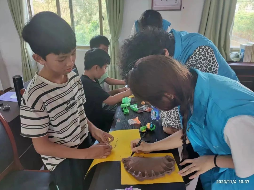 在立冬之际,我们在包山村开展了“秋韵正浓时,悄然迎立冬”主题活动。志愿们和孩子们一起完成手工作业,用黏土创作出自己喜欢的物品。看!他们设计出了一个超级大的饺子,特别有节日氛围。孩子们还发挥自己的创造力,制作出了一个又一个有意思的作品,他们迫不及待地拿到老师面前,想展示自己的成果。