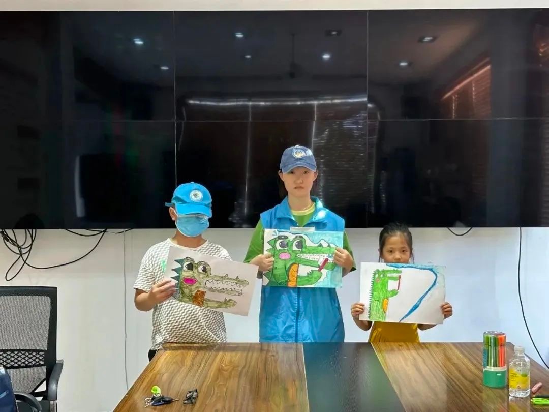 先来看看本周的绘画课堂,本次要教授的画作名为《爱刷牙的鳄鱼宝宝》。在前期备课环节,志愿者精心选择课题,耐心完成教案,用心完成画作。在上课过程中,孩子们十分配合,课堂氛围和谐融洽,孩子们坚持不懂就问,在志愿者的指导下,他们用画笔一笔一笔勾勒出属于自己的小“鳄鱼”。